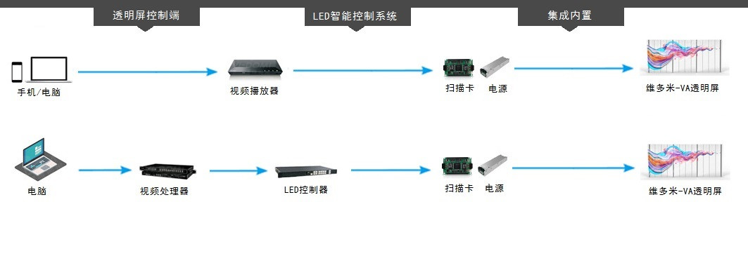 可支持同时连接控制4个屏体异步播放不同内容,支持同时连接多个屏体同步播放相同画面。